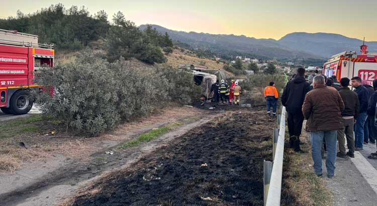 Dörtyol’da refüje çarparak devrilen tırda çıkan yangında 2 kişi yaşamını yitirdi.