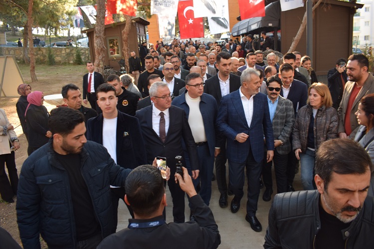 Şehri yeniden ayağa kaldırırken, sadece binaları değil, sosyal hayatı da inşa ettiklerini söyleyen Hatay Büyükşehir Belediye Başkanı Mehmet Öntürk, “Bir yandan hükümetimizin yaptığı destekler diğer yandan da ayrı gayrı demeden başta Büyükşehir olmak üzere 15 belediyemizin birlik beraberlik içerisinde imkânlarını milletimizin emrine seferber etmesiyle işte bugün böyle eserler ortaya çıkıyor. Bugün İskenderun’da bir sahil bandı yeniden yapıldı, yapılıyor. Feyezan Kanalı yıllarca konuşuluyordu yapılıyor. Plajlar, yollar, bulvarlar yapılıyor. İşte biz tüm bunları devlet, millet ve yerel yönetimler el birliğiyle beraber olarak yaptık” ifadeleriyle eserlerde emeği geçen herkese teşekkür etti.