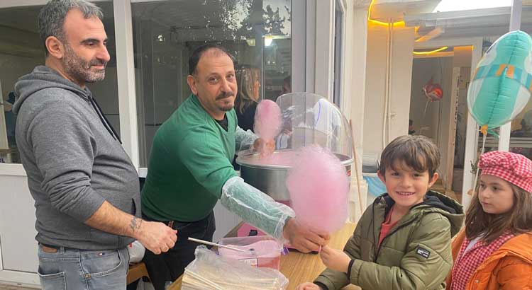 Hediye dağıtımının ardından, Noel Şenliği etkinliği kilise bahçesinde çocuklar için hazırlanan pamuklu şeker ve balon dağıtımıyla devam etti.