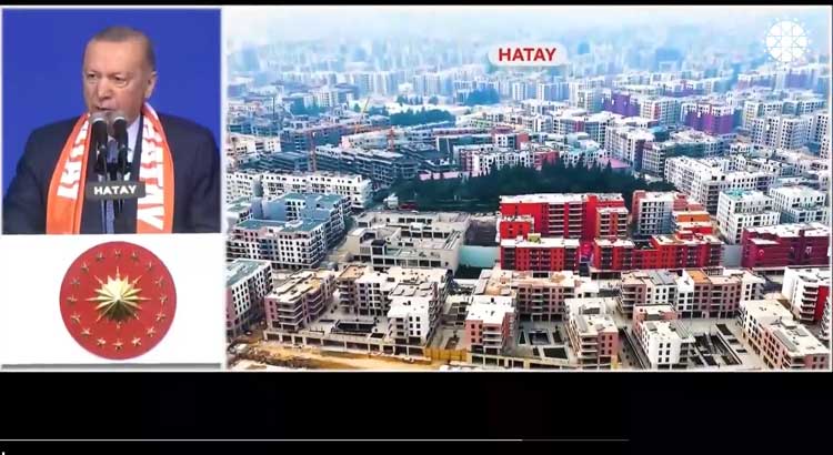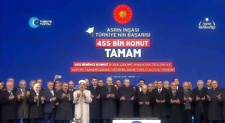 İşte bugün, dünyada hemen hiçbir ülkenin altından kalkamayacağı büyük bir başarıya Hatay’ımızda bizzat tanıklık ediyoruz. Depremin vurduğu 11 ilimizde yapımı tamamlanan 455 bininci afet konutumuzu hak sahibi kardeşlerimize teslim etmenin gururunu yaşıyoruz.