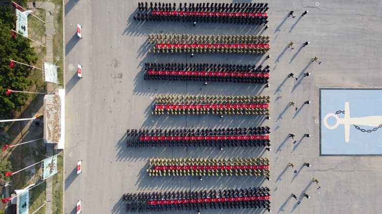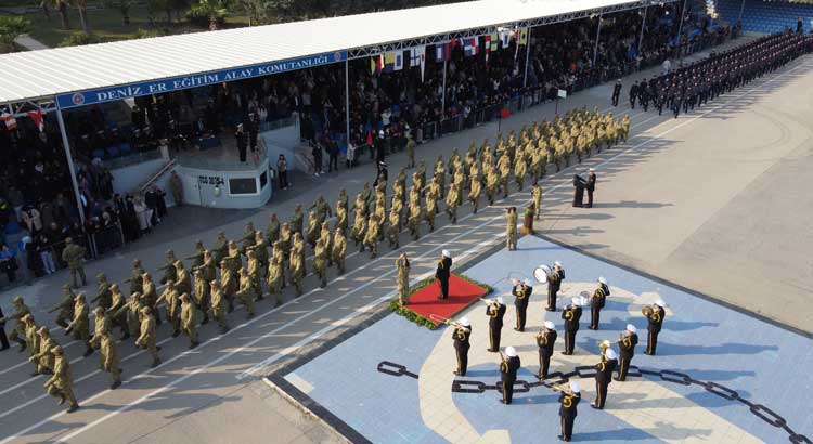 Dönem birincisi Deniz Muhafız Er Tahsin Şahbaz’ın yaş kütüğüne plaket çakmasından sonra 1279 acemi er yemin etti, geçit töreni yapıldı.