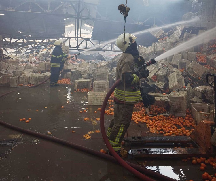 Hürriyet Mahallesi’ndeki bir narenciye paketleme tesisinde henüz belirlenemeyen nedenle yangın çıktı.