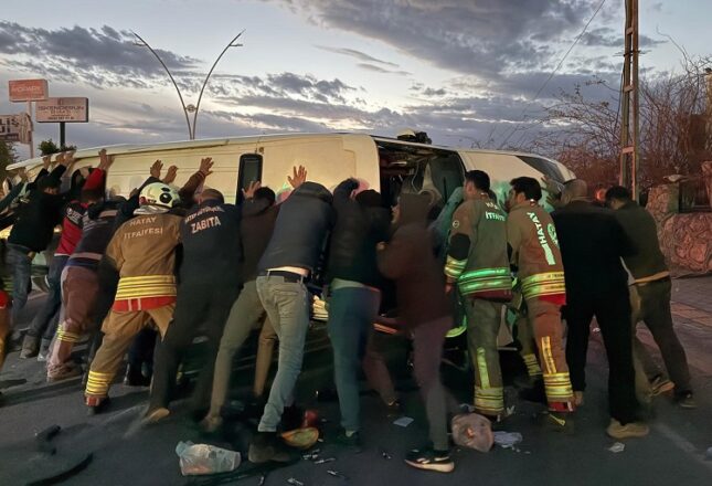 Kazanın etkisiyle sürücüsünün kontrolünden çıkan minibüs, park halindeki 2 cipe çarpıp devrildi. İhbar üzerine bölgeye 112 Acil Sağlık, itfaiye ve polis ekipleri sevk edildi.