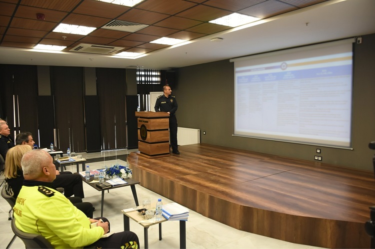 Hatay İl Emniyet Müdürü Rüştü Yılmaz ile rütbeli personelin katılımıyla gerçekleştirilen ‘Değerlendirme Toplantısı’nda ‘Terörle Mücadele, Asayiş, Narkotik, Kaçakçılık Suçları’ başta olmak üzere il merkezi ve ilçelerde yürütülen çalışmalar ayrıntılı olarak değerlendirildi.