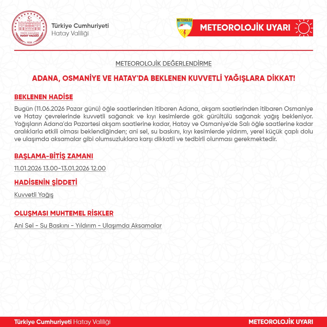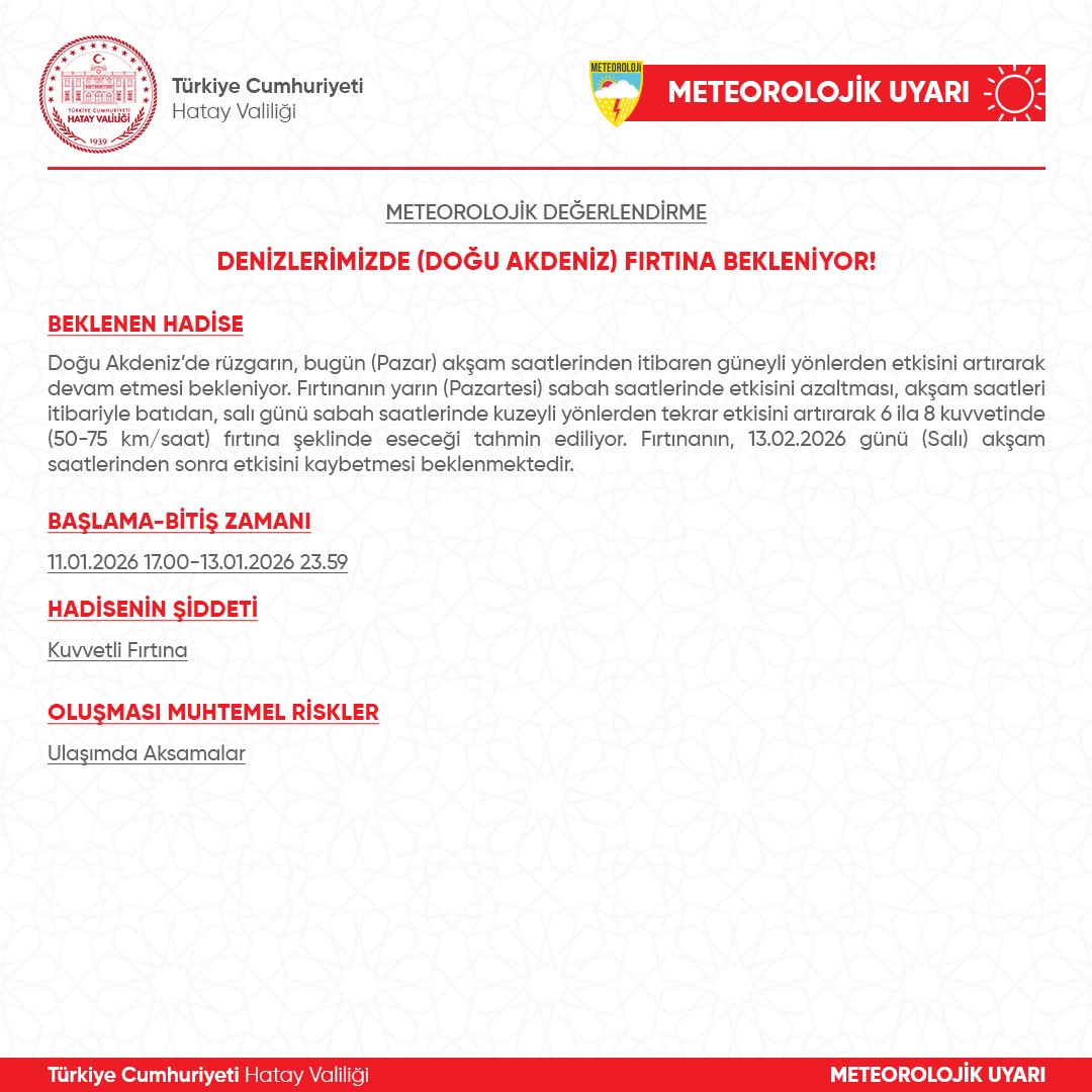 Genel, Gündem, Önemli HaberValilik uyardı! Oluşturulma Tarihi: 11 Ocak 2026 – 15:24 Yazar: Söz Gazetesi Ne çabuk unuttun! İskenderun’da Adnan Yener’in vefat şoku!