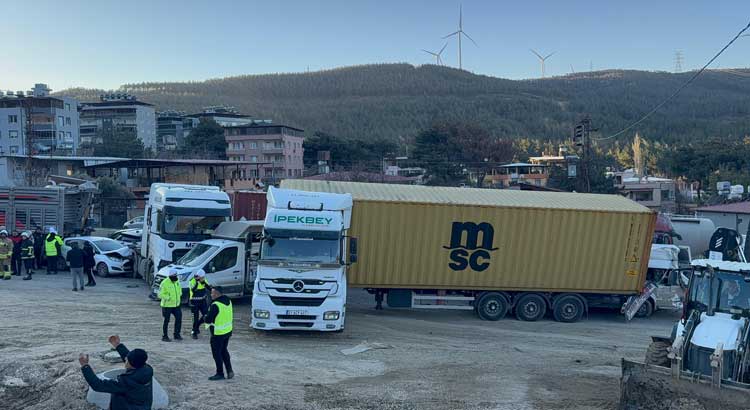 Belen-İskenderun kara yolunun Halilbey Mahallesi mevkiinde buzlanan yolda 4 tır, 3 otomobil, cip, kamyonet, panelvan ve minibüsün karıştığı zincirleme trafik kazası meydana geldi.