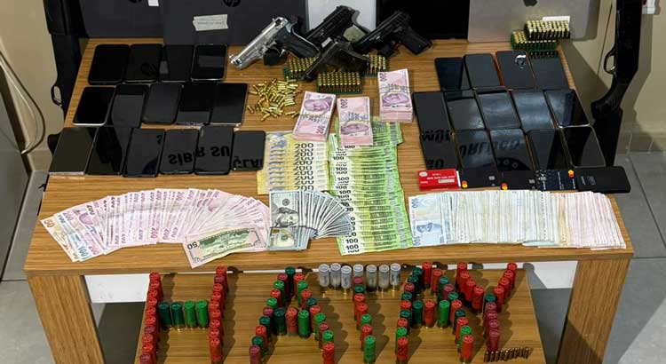 Şüphelilerin ev ve iş yerlerinde yapılan aramada 4 ruhsatsız tabanca, 2 ruhsatsız pompalı tüfek, 364 fişek, 1,19 gram uyuşturucu, 32 cep telefonu, 25 sim kart, 5 bilgisayar, 1 tablet, 1 hard disk, 121 bin 650 lira, 7 bin 500 riyal, 3 bin avro, 6 bin 550 dolar ve yaklaşık 3 milyon 100 bin lira değerinde ziynet eşyası ele geçirildi.