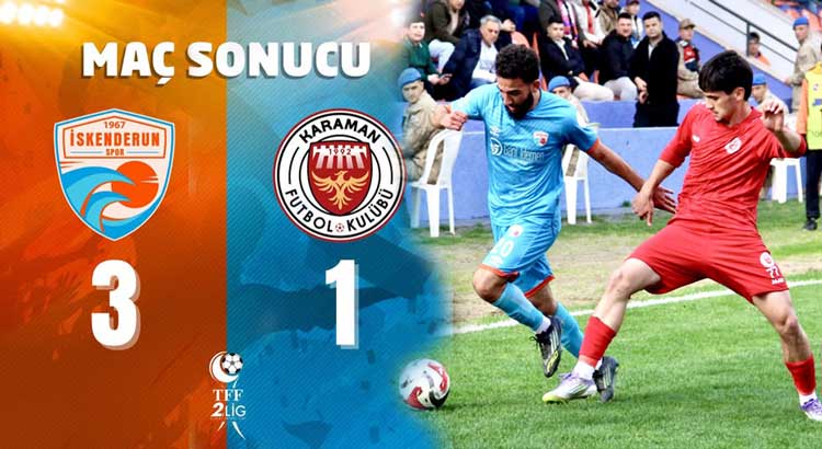 TFF 2. Lig Beyaz Grup’ta play-off mücadelesi veren turuncu mavili temsilcimiz İskenderunspor, sahasında ağırladığı Karamanspor’u 3-1 mağlup ederek kritik bir galibiyete imza attı.