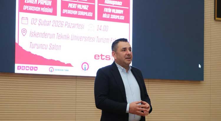 İskenderun Teknik Üniversitesi Turizm Fakültesi tarafından düzenlenen “Turizmde Kariyer Günü” etkinliği, öğrencilerle ETSTUR temsilcilerini bir araya getirdi. Merkez Kampüs Turuncu Salon’da gerçekleştirilen ve yoğun ilgi gören etkinliğe konuşmacı olarak ETSTUR Turizm Şirketi Operasyon Müdürü Evren Pamuk, Operasyon Sorumlusu Mert Yılmaz ve Bölge Sorumlusu Fatih Yıldırım katıldı.