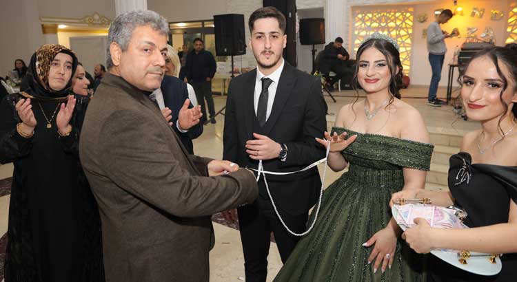 Güzel gelin ve yakışıklı damadın mutluluğu yüzlerinden okunurken, ikisinin uyumu tüm bakışları üzerlerine çekmeyi başardı. Takı merasiminde gelinin para yağmuruna tutulduğu tören hatıra fotoğraflarıyla ölümsüzleştirildi.