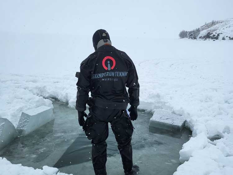İskenderun Teknik Üniversitesi(İSTE) Denizcilik Teknolojileri Meslek Yüksekokulu’nun Su Altı Teknolojisi(SAT) ve Su Altı Kaynak Teknolojisi(SAK) programı öğrencileri Ardahan Çıldır Gölü’nde buz altı dalışı gerçekleştirdi.