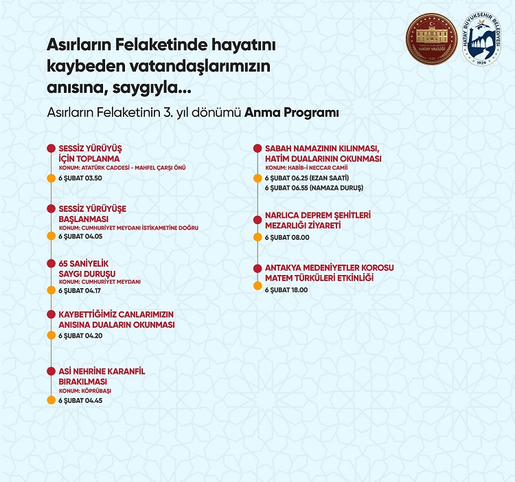 Valilik ayrıca, Asırların Felaketinin 3. yıl dönümü dolayısıyla 6 Şubat Anma Programı’nı da şöyle duyurdu: