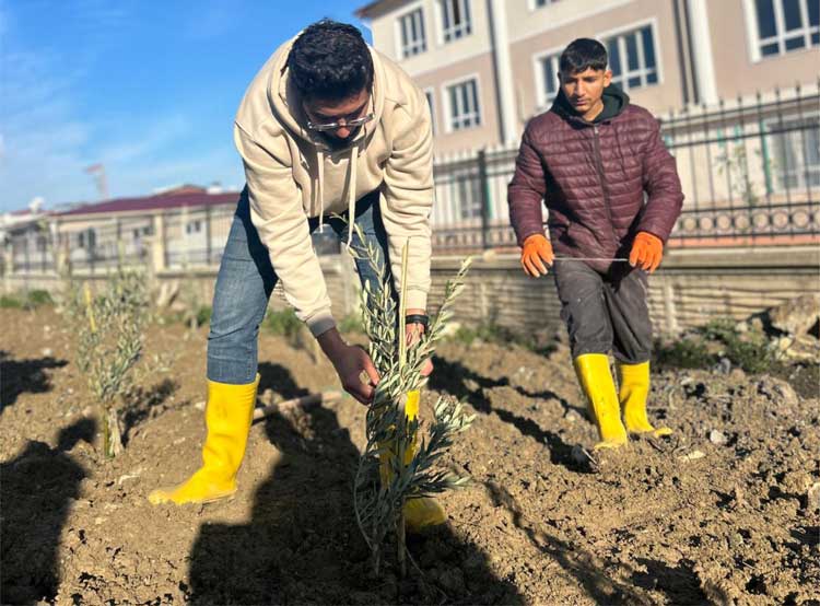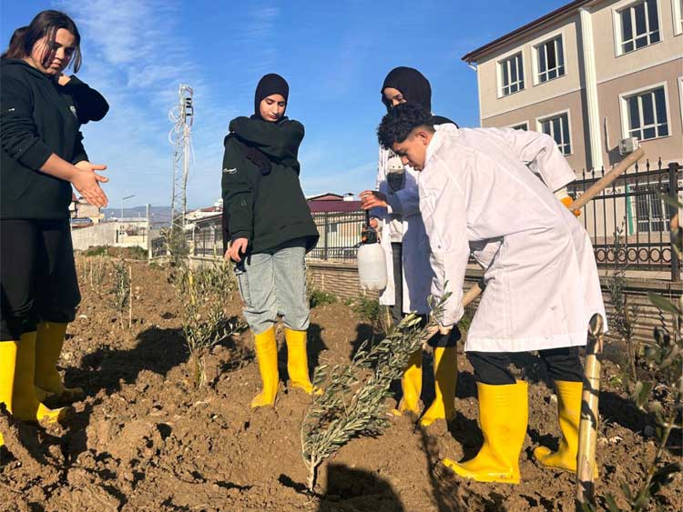 Gebze Teknik Üniversitesi’nin işbirliğinde yürütülen çalışma kapsamında, Hatay Saadet Yusuf Mıstıkoğlu Mesleki ve Teknik Anadolu Lisesi’nde zeytin bahçesi oluşturuldu. Etkinlikte okulun arazisine, afette hayatını kaybeden öğretmenler anısına 234 zeytin fidanı toprakla buluşturuldu.
