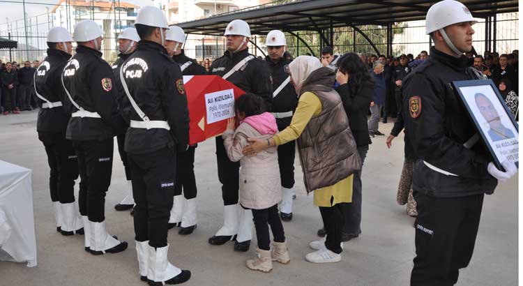 Polis memurunun naaşı, tören mangası tarafından omuzlara alınarak cenaze aracına taşındı. Törende Kızıldağ’ın tabutunun başına gelen küçük kızı, “Baba” diyerek ağlaması yürekleri burktu. Resmi törenin ardından Ali Kızıldağ’ın cenazesi, defnedilmek üzere memleketi Hatay’a uğurlandı.