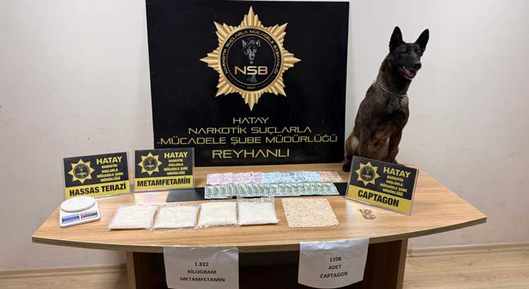 Reyhanlı’da bir evde narkotik dedektör köpeği ile yapılan aramada 1 kilo 822 gram sentetik uyuşturucu(metamfetamin), 1100 adet uyuşturucu hap, hassas terazi, 1900 dolar ve 4 bin 400 lira ele geçirildi, 1 şüpheli gözaltına alındı.