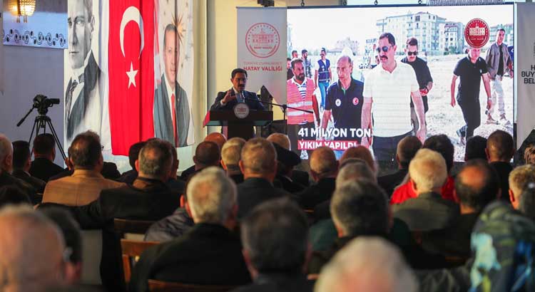 Konuşmasında muhtarları ‘milletin mahalle ve köylerimizdeki vicdanı’ olarak nitelendiren Vali Masatlı, 8 kez yıkılıp her defasında yeniden ayağa kalkan Hatay’ın bugün 9. kez küllerinden doğuşuna şahitlik edildiğini vurguladı. Depremlerin ilk anlarından itibaren sahada olduklarını ifade eden Masatlı, “Türkiye Cumhuriyeti Devleti, dünyada benzeri görülmemiş bir iradeyle bu enkazın altından yeni bir şehir inşa etmiştir. Biz Hatay’ımızda sadece taş üstüne taş değil; can üstüne can, umut üstüne umut koyduk” sözleriyle yürütülen ihya, inşa ve imar çalışmalarının kararlılığını dile getirdi.