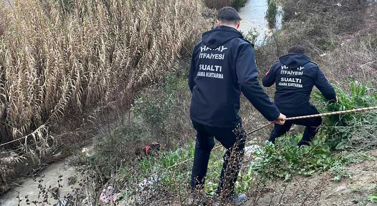Antakya’da dereye düşen oğlağı çıkarmak isterken kendisi de mahsur kalan kişi itfaiye ekiplerince kurtarıldı.