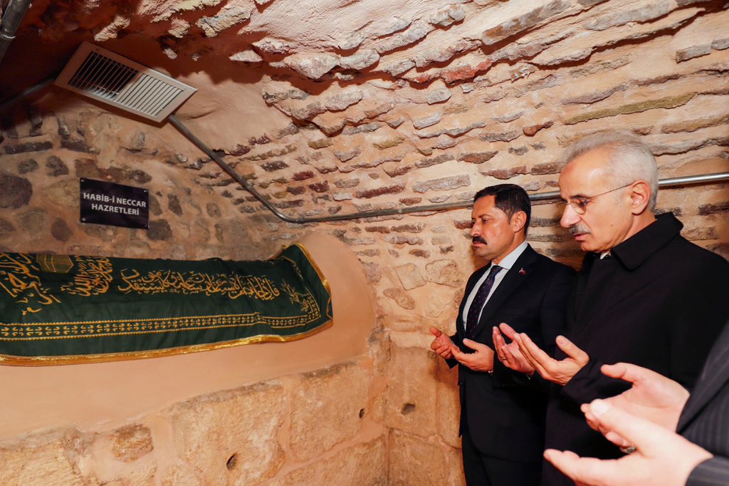 Asrın felaketinin ardından yeniden ibadete açılan Habib-i Neccar Camii’nda kıldığı Cuma namazı sonrası Habib-i Neccar Hazretleri Türbesi’ni ziyaret eden Bakan Uraloğlu, daha sonra beraberindeki heyetle Dörtyol–Hassa Otoyol ve Demiryolu Tüneli Yapım İnşaatını İnceledi.