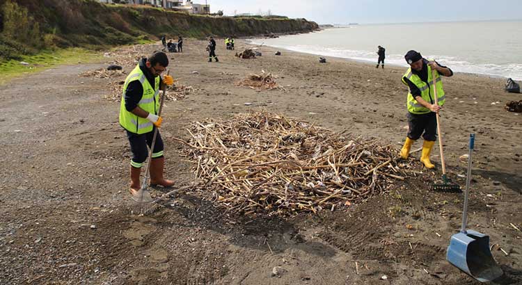 Sağanak yağmurun etkisiyle Payas ve Arsuz Sahiline derelerden deşarj olan ve biriken katı atıkları temizleyen HBB ekipleri çevre kirliliğinin önüne geçmek adına yaptığı çalışmalarda 105 ton civarında katı atığın temizlenmesini sağladı.