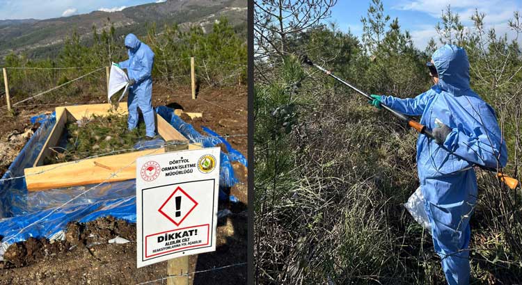 Ağaçlarda büyüme kaybına ve ciddi yaprak zararına neden olan çam kese böceğine karşı 279 hektarlık alanda ‘adacık yöntemi’ ile mücadele eden ekipler, zararlının yoğun olduğu alanlarda noktasal ve kontrollü biyolojik uygulamalar gerçekleştirdi.