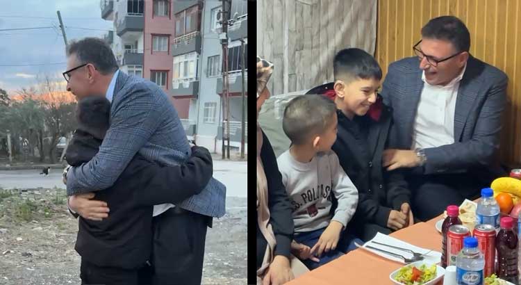 Geçtiğimiz günlerde karşılaştığı çocuğun sevgi dolu davetine verdiği sözü tutan Başkan Dönmez, Tilafsunlu Ailesi ile birlikte iftarını açtı. Burak Halil’in sevgi seliyle ağırlanan Dönmez, aileyle uzun süre sohbet etti. Mahalle sakinlerinin de ilgi gösterdiği buluşmada, Burak Halil’in Libya’da çalışan babası ile görüntülü telefon konuşması da yapan Başkan Dönmez, ‘Aileniz Önce Allah’a, sonra bizlere emanet’ dedi.