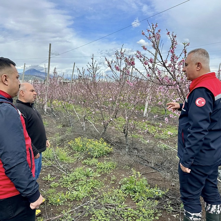 Hatay İl Tarım ve Orman Müdürü Abdurrahman Türkmen, Koordinasyon ve Tarımsal Veriler Şube Müdürü Süleyman Samyeli ile birlikte erken çiçeklenen meyve bahçelerinde incelemelerde bulundu.