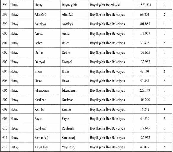 | Dörtyol | 132.987 | 1 |