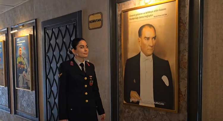 Ulu Önder Gazi Mustafa Kemal Atatürk’ün ‘Ey Türk kadını, sen yerde sürünmeye değil, omuzlar üzerinde göklere yükselmeye lâyıksın” sözüyle sona eren video da jandarma personelinin ‘Hatay benim şahsi meselemdir’ yazısının önünde verdiği fotoğraf ayrıca kadın jandarmanın Hatay’ın güvenliğini sağlama konusundaki kararlılığını da ortaya koydu.