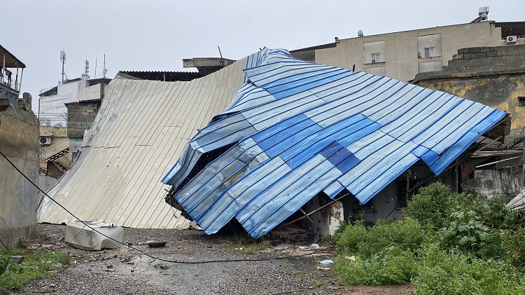 İskenderun’da şiddetli rüzgar nedeniyle 2 binanın çatısı uçtu, bir binadaki güneş enerjisi paneli devrildi.
