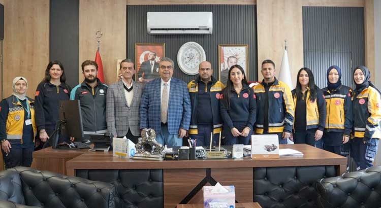 Hatay’da görev yapan Acil Sağlık Hizmetleri ve 112 İl Ambulans Servisi personelleri, 22 Mart Acil Tıp Teknisyenleri ve Teknikerleri Günü münasebetiyle İl Sağlık Müdürü Dr. Sıtkı Sönmez’i makamında ziyaret etti.