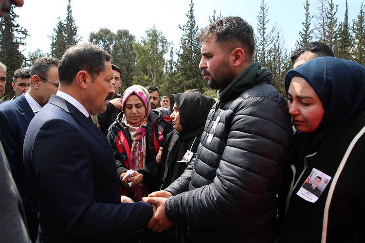 Hatay Valisi Mustafa Masatlı, Açay’ın ailesine sabır ve başsağlığı dileğinde bulunurken, şehidin tabutunun sarılı olduğu Türk Bayrağını teslim etti.