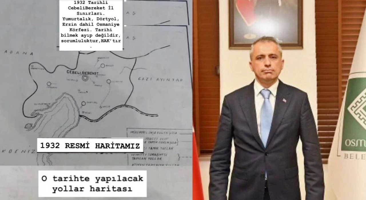 “1932 Tarihli Cebelibereket(Osmaniye) İl Sınırları; Yumurtalık, Dörtyol, Erzin dahil Osmaniye Körfezi idi. Tarihi bilmek ayıp değildir, sorumluluktur, Hak’tır.”