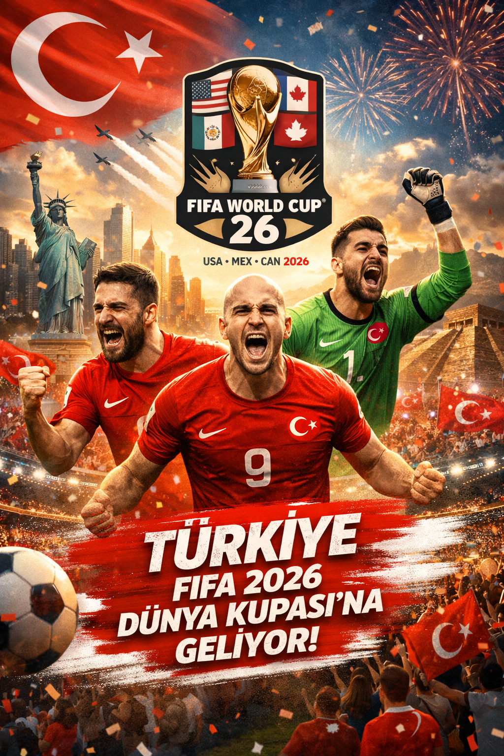 Türkiye A Milli Futbol Takımı, 2026 FIFA Dünya Kupası Avrupa Elemeleri play-off finalinde Kosova’yı deplasmanda 1-0 mağlup ederek 24 yıl sonra Dünya Kupası’na katılmaya hak kazandı. Türkiye’ye zaferi getiren tek golü, 53. dakikada Orkun Kökçü’nün pasında Kerem Aktürkoğlu kaydetti. Türkiye, alınan bu sonuçla beraber D Grubu’nda yer alarak ABD, Avustralya ve Paraguay’la mücadele edecek.