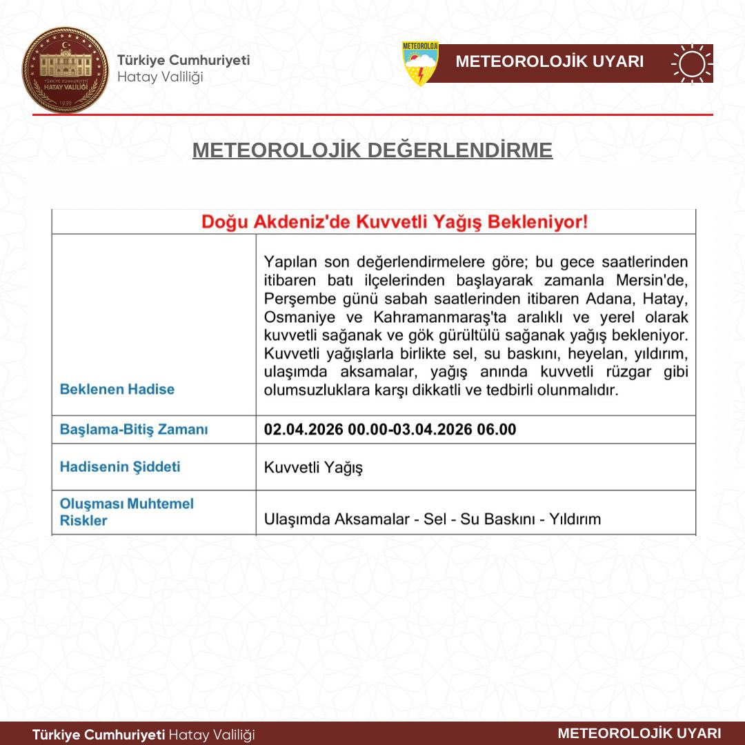 DOĞU AKDENİZ’DE KUVVETLİ YAĞIŞ BEKLENİYOR!