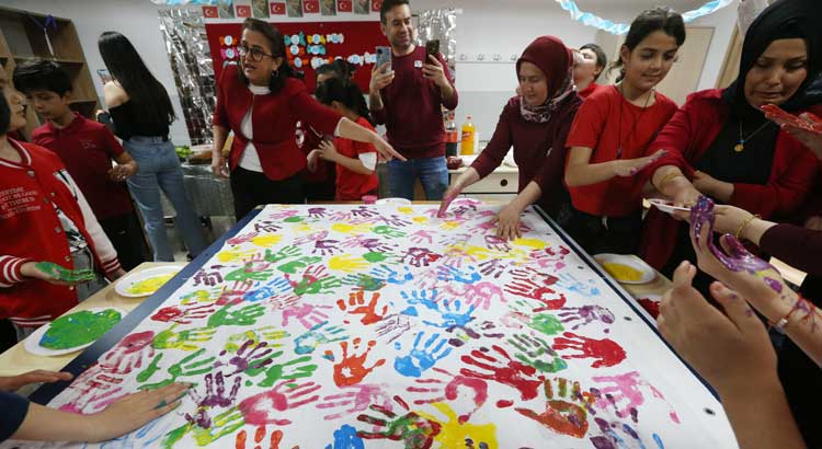 İskenderun Fenerbahçeliler Derneği’nce, Namık Kemal Ortaokulu’nda organize edilen etkinlikte, parmak boyası yapan çocuklar, öğretmenleriyle gökyüzüne renkli balon uçurdu.