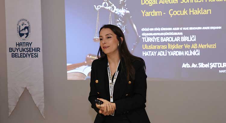 Hatay Aile ve Sosyal Hizmetler Müdürlüğü’nden Psikolog Ali Yoğun, çocuk koruma alanında sunulan sosyal hizmet türlerine ilişkin değerlendirmelerde bulunurken, Adli Yardım Kliniği Hukuk Koordinatörü Avukat Sibel Şat Durkal ise doğal afetler sonrasında çocuk hakları bağlamında sunulan hukuki destekler hakkında katılımcıları bilgilendirdi.