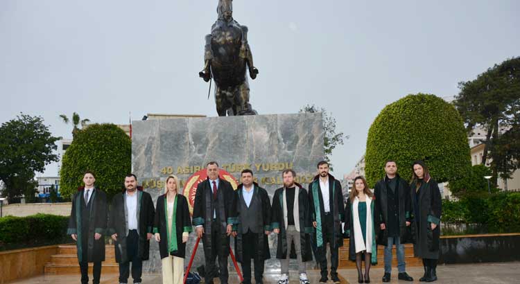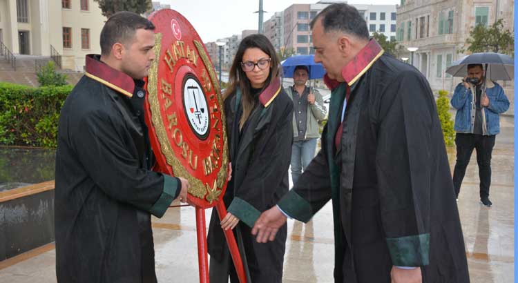 Hatay Barosu Başkanı Av. Hatay Tut, Genel Sekreter Av. Gülçin Emir, Başkanvekili Av. Garip Erhan Biner, Disiplin Kurulu üyesi Av. İbrahim Bilir, Genç Avukatlar Meclisi Başkanı Av. Tuğçe Süner ve Genç Avukatlar Meclisi üyesi meslektaşlarının katılımıyla düzenlenen çelenk sunma töreninde, avukatlar mesleki dayanışma ve adalet vurgusu yaptı.
