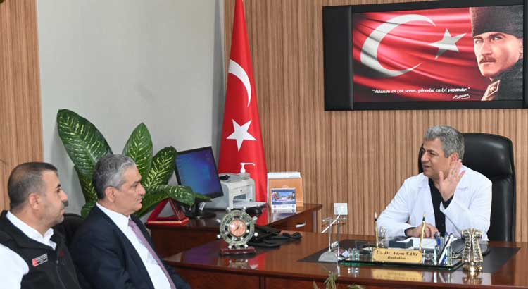 Sağlık alanındaki çalışmalar, inşa süreci devam eden yeni devlet hastanesi ve bölgedeki sağlık yatırımlarının da değerlendirildiği ziyarette, Başhekim Sarı da ziyaretten dolayı Başkan Turan Bozkurt ve beraberindeki heyete ziyaretleri ve iyi dilek temennileri için teşekkür etti.