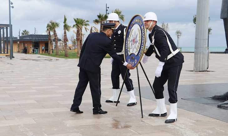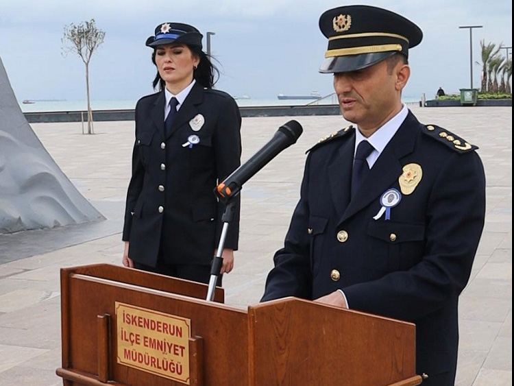 Atatürk Anıtı’na çelenk sunumu, saygı duruşu ve İstiklal Marşı’nın okunmasının ardından oldukça anlamlı bir konuşma yapan İskenderun İlçe Emniyet Müdürü Nevzat Güneş, teşkilatın temel değerlerini hukuka bağlılık, insan haklarına saygı ve adalet olarak belirtti.