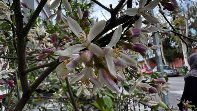 Hava sıcaklığının 23 dereceyi bulduğu ilçede narenciye ağaçlarının çiçeklenmesiyle ortaya çıkan manzara görenleri hayran bıraktı.