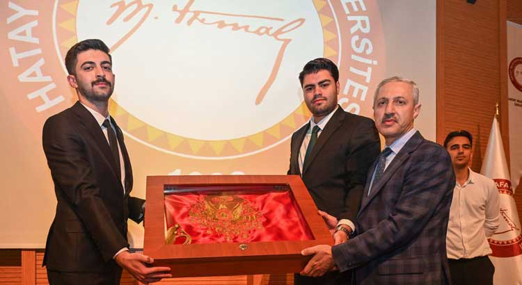 Hatay Mustafa Kemal Üniversitesi(MKÜ) Rektörü Veysel Eren, Çanakkale Savaşı’nda göstermiş oldukları kahramanlıklarla adını dünya tarihine yazdıran 57. Piyade Alayı’nın canları pahasına koruduğu sancağı öğrencilere teslim etti.