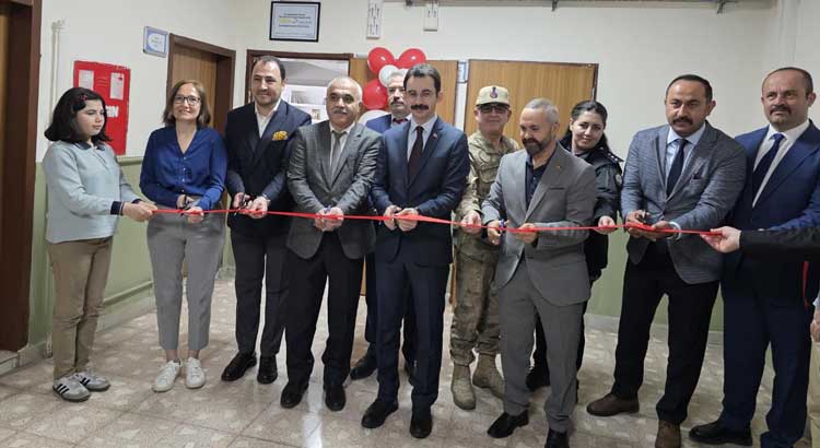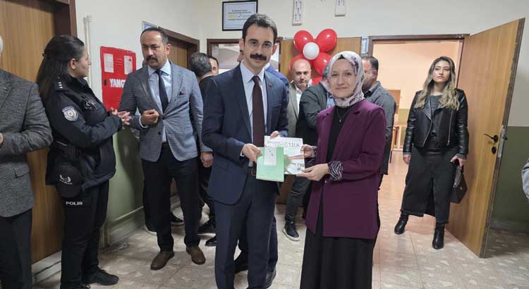 Kaymakam Şan, kütüphanenin öğrenciler için faydalı olmasını ve onların hayatına değer katmasını temenni ederek, açılış kurdelesini protokolle birlikte kestikten sonra, kütüphaneyi inceledi.