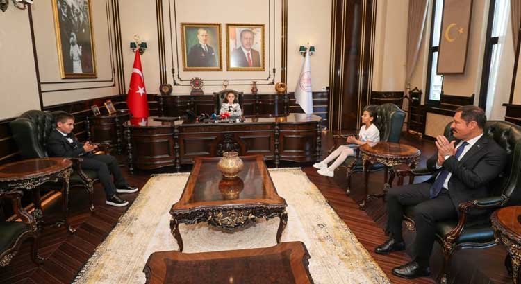 Hatay Valisi Mustafa Masatlı, 23 Nisan Ulusal Egemenlik ve Çocuk Bayramı’nda makamını Defne Gümüşgöze İlkokulu 3. sınıf öğrencisi Mina Meryem Büyükaşık’a devretti.