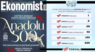 Ekonomist Dergisi’nin her yıl gerçekleştirdiği “Anadolu’nun En Büyük 500 Şirketi” araştırmasında, Tosyalı Holding bünyesindeki Tosçelik...