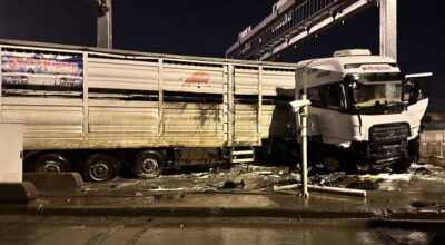 Dörtyol otoyol gişelerinde direğe çarpan tırda çıkan yangın hasara neden oldu. M.Y. yönetimindeki 06 DSM...