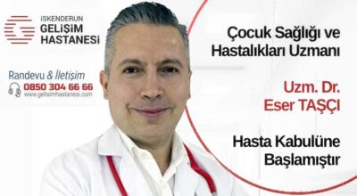 Çocuk Sağlığı ve Hastalıkları Uzmanı Dr. Eser Taşçı, İskenderun Gelişim Hastanesi’nde hasta kabulüne başladı. Uzman...