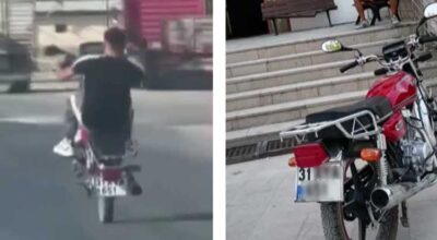 Kırıkhan’da akrobatik hareketler yaparak trafiği tehlikeye düşüren motosiklet sürücüsüne 21 bin 837 lira ceza kesildi....
