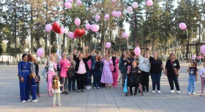 İskenderun’da 5 yıllık mücadelesinin ardından meme kanserini yenen 48 yaşındaki Hatice Eryaşar için gökyüzüne pembe...