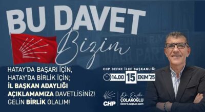 Cumhuriyet Halk Partisi(CHP) Hatay İl Başkanlığı adaylığını açıklayacak olan Hatay’ın tanınmış doktorlarından Ender Çolakoğlu, dikkat...