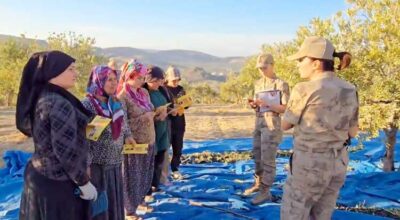 Jandarma, kadınlarla zeytin toplayıp, KADES’i anlattı